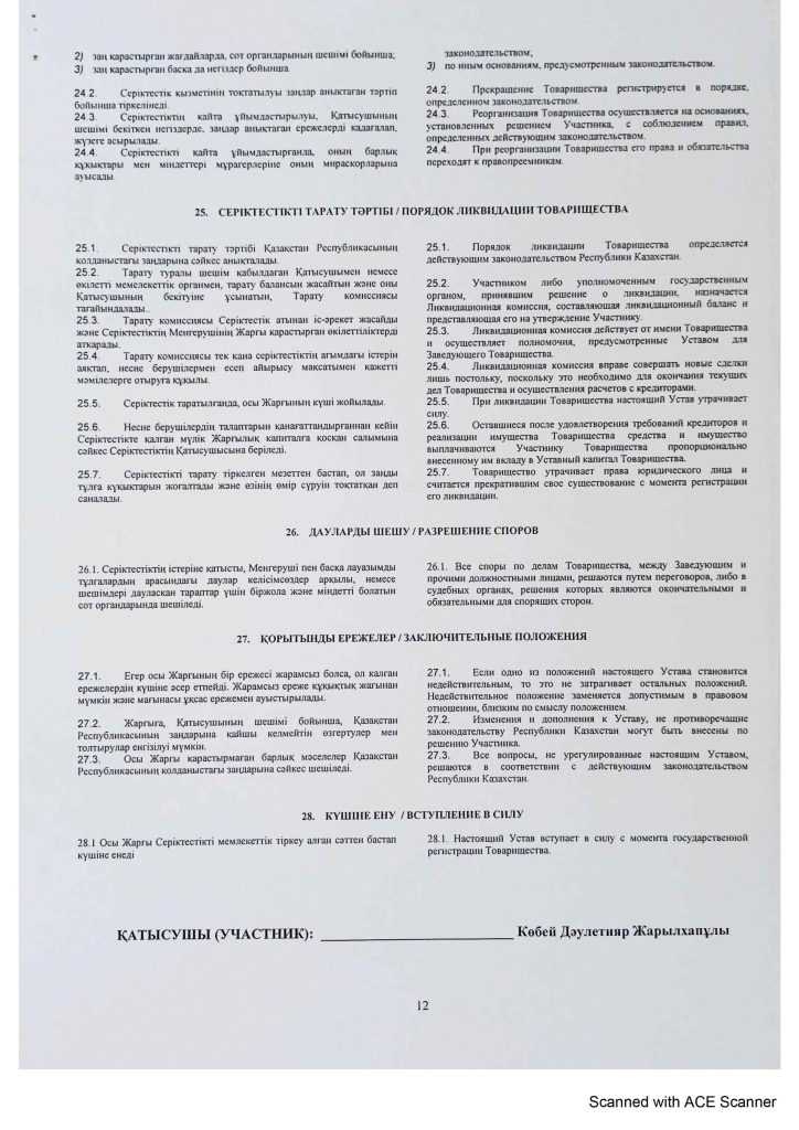 ЖАУАПКЕРШІЛІГІ ШЕКТЕУЛІ СЕРІКТЕСТІГІ